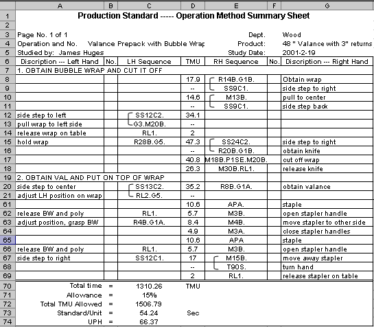非常有助于方法分析,用户可以在实际开展一项工作之前即对其进行测量和想像,这对减少浪费、提高效率是非常重要的,因而对建立正确的生产布局和方法改进很有帮助。