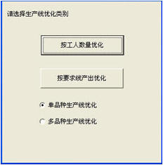 1. 本软件运行时,将可选择是进行工作测量还是生产线平衡,而生产线平衡则可选择是按预定工人数量还是按要求线产出平衡,是单品种还是混合品种生产线。如图1所示。