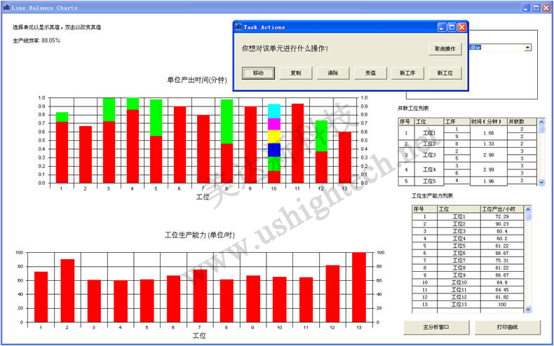 如想转换到生产线平衡分析模块,则点击生产线平衡按钮即可。 |